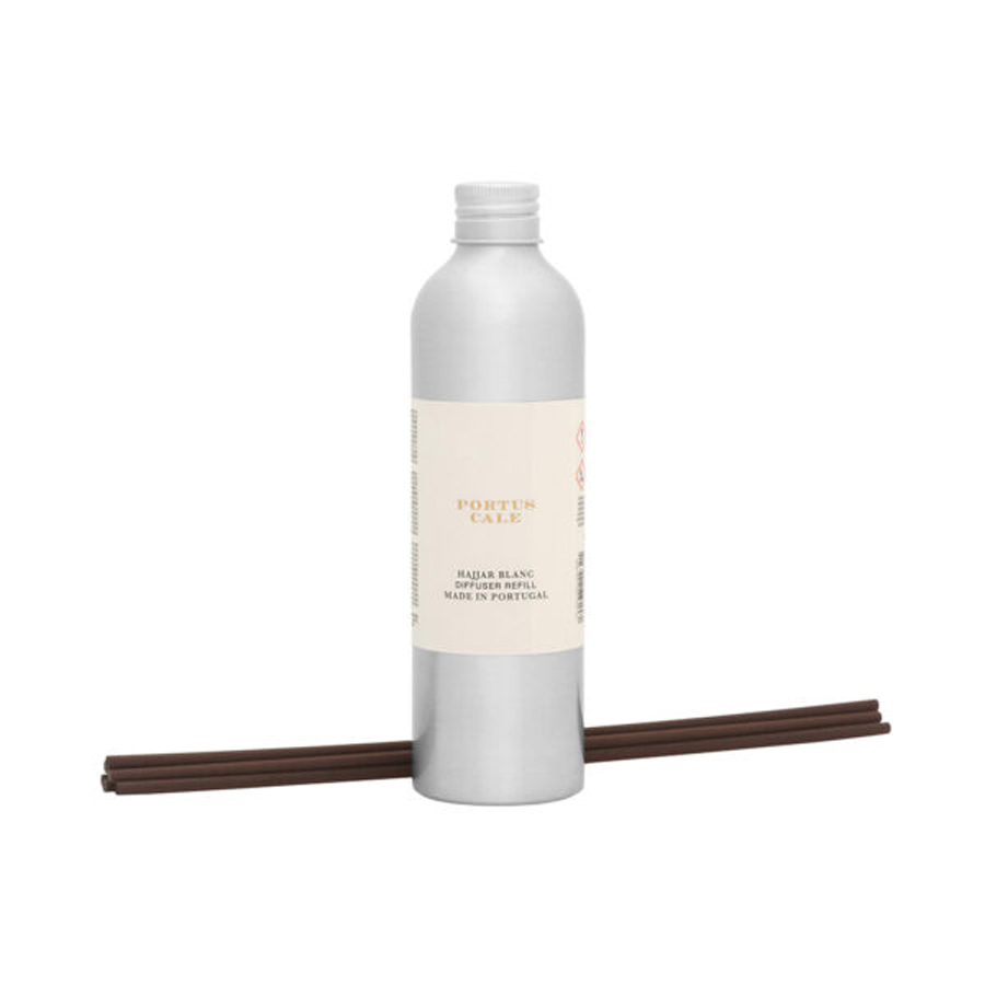 The Hajjar Blanc Diffuser Refill 250mL is the ideal way to extend the unique olfactory experience of this collection. Packaged in a sleek aluminium bottle, it keeps the signature woody oriental woody fragrance alive, continuously infusing the space with sophistication and serenity.